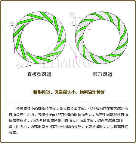 弧形風(fēng)道,風(fēng)量損失小、物料流動(dòng)性好