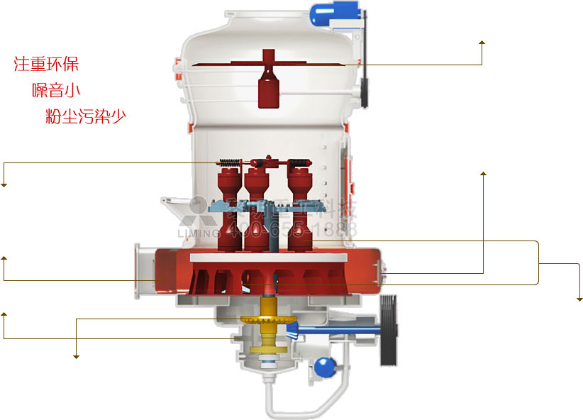 加工物料: 石灰石、方解石、白云石、重晶石、滑石、碳酸鈣、石膏、膨潤土等