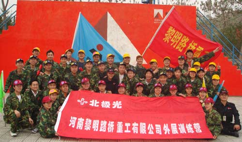 2007年4月21日,北極光大乙風光園外展訓練基地內(nèi),“河南黎明路橋重工有限公司”的旗幟迎風飄揚,公司40余名新員工在這里參加了為期一天的“同心黎明”拓展訓練。
