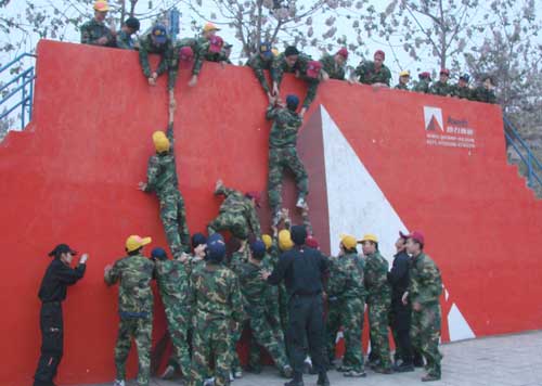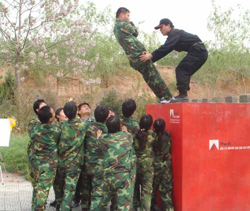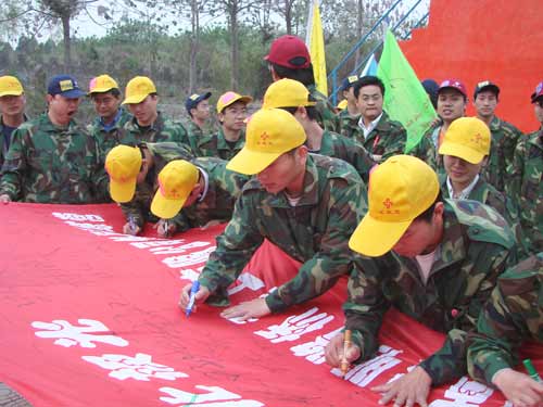 畢業(yè)墻是最后的一項拓展項目,攀上了畢業(yè)墻也就代表者課程的圓滿結(jié)束,公司在畢業(yè)墻前召開了誓師大會,參訓員工都在鮮紅的營旗上寫下了自己的諾言,用一個個名字表示著一顆顆團結(jié)、火熱的心。最后,在全體參訓員工的共同努力下,我們用歷時8分鐘的好成績刷新了該訓練基地該項目的用時紀錄,也給公司交上了一份滿意的答卷。
