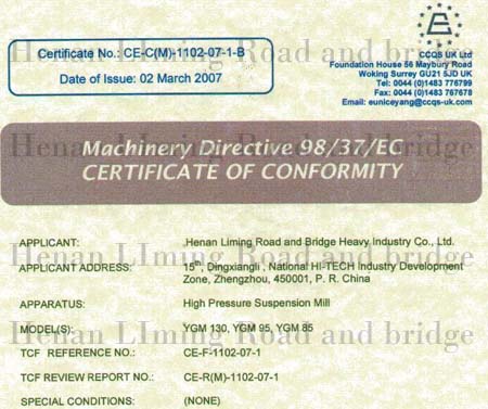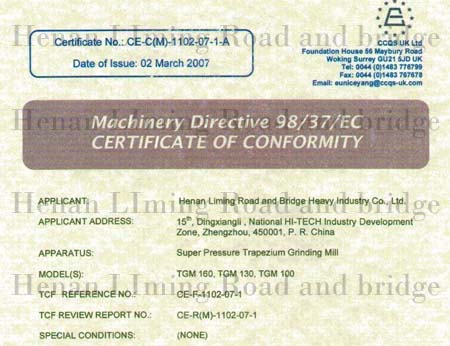 [CE認(rèn)證]熱烈祝賀公司梯形磨高壓磨通過(guò)歐盟CE認(rèn)證