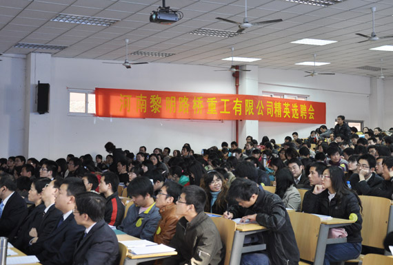 河南黎明重工科技股份有限公司(原河南黎明路橋重工有限公司)2010年校園大型精英選聘會自11月20日開啟以來,已先后在西安交通大學、鄭州大學,河南科技大學、太原理工大學等十幾所知名高校成功舉行了多次大型專場招聘會,每場應聘人數(shù)均在200人以上,其中在鄭州大學同時參加選聘會的同學多達500余人,在西安交通大學參加的同學也有近300人之多。