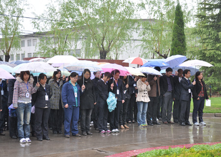 天空陰霾,細(xì)雨紛紛。4月21日上午10時(shí),黎明重工科技全體員工冒雨面向國(guó)旗肅立,默哀3分鐘,沉痛悼念4月14日青海省玉樹藏族自治州大地震遇難同胞。默哀結(jié)束后,公司領(lǐng)導(dǎo)走向捐款箱捐款, 全體職工緊隨其后,紛紛向?yàn)?zāi)區(qū)人民獻(xiàn)上了自己誠(chéng)摯的愛心。