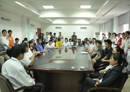 黎明重工科技對河南工業(yè)大學(xué)電子商務(wù)系師生的到來表示了極大的熱情,在交流過程中,電子商務(wù)部李經(jīng)理首先向廣大師生介紹了黎明重工科技近年來的發(fā)展和未來的總體規(guī)劃,接著分別由電子商務(wù)部國內(nèi)市場組、國際市場組和技術(shù)組的主管做了詳細的工作介紹,指出目前大學(xué)生剛到公司工作時存在的問題,并鼓勵大家多學(xué)習(xí)搜索引擎、網(wǎng)站開發(fā)語言等專業(yè)知識,使理論和實踐相結(jié)合。