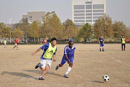 比賽剛一開始,老外足球隊(duì)?wèi){借熟悉場(chǎng)地和身體優(yōu)勢(shì)發(fā)難,頻頻對(duì)我公司足球隊(duì)發(fā)起進(jìn)攻,數(shù)次在我方球門前制造險(xiǎn)情,并攻入一球。在適應(yīng)了場(chǎng)地,和熟悉對(duì)手的球風(fēng)后,公司足球隊(duì)的隊(duì)員們漸漸的穩(wěn)住了陣腳,開始和對(duì)手進(jìn)行激烈的對(duì)攻。比賽中,雙方隊(duì)員全神貫注,在跑停閃躲中彰顯著智慧,傳帶撲射間揮灑著青春。比賽在歡樂輕松的氣氛中結(jié)束,隊(duì)員們雖帶走了背影,卻留下了歡樂和友誼。