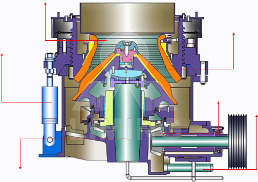 3、HPT圓錐破對(duì)腔型和沖程進(jìn)行了重新實(shí)驗(yàn)設(shè)計(jì),更適合破碎河卵石、玄武巖、鐵礦石等堅(jiān)硬物料,產(chǎn)量比普通彈簧圓錐破提高。
