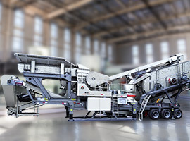 700-900mm的原料進(jìn)入J45顎破履帶移動破碎站進(jìn)行粗碎,而后粗碎后的物料進(jìn)入I44R反擊破履帶移動破碎站進(jìn)行二段破碎。二段破碎后,大于31.5mm的物料通過循環(huán)篩返料皮帶送回反擊破繼續(xù)破碎,31.5mm以下的混合料輸送到S130履帶式篩分移動站,經(jīng)過三層篩網(wǎng)的分離,最終分出0-5/5-10/10-20/20-31.5四種成品料。