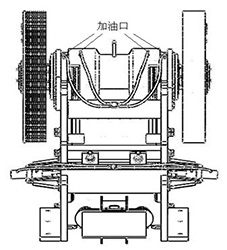 試機(jī)前必須確認(rèn)各連接螺栓已擰緊,確認(rèn)各活動(dòng)部位已潤(rùn)滑,潤(rùn)滑站加油口位置(見右圖),潤(rùn)滑方式采用干油集中潤(rùn)滑站,干油集中潤(rùn)滑站的結(jié)構(gòu)圖見附錄,潤(rùn)滑油脂用通用鋰基潤(rùn)滑脂或復(fù)合鈣基潤(rùn)滑脂。