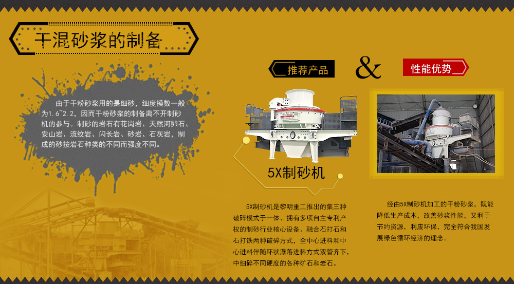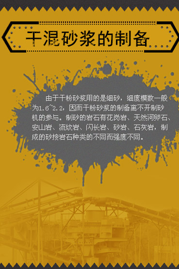 由于干粉砂漿用的是細(xì)砂,細(xì)度模數(shù)一般為1.6~2.2,因而干粉砂漿的制備離不開制砂機(jī)的參與。制砂的巖石有花崗巖、天然河卵石、安山巖、流紋巖、閃長(zhǎng)巖、砂巖、石灰?guī)r,制成的砂按巖石種類的不同而強(qiáng)度不同。