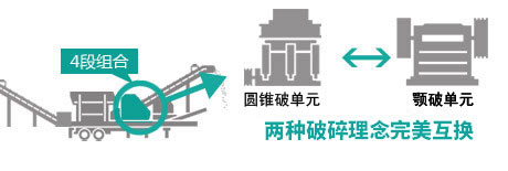 給料單元互換系統(tǒng)和破碎單元互換系統(tǒng),只需再投資單機設備成本,短時間內,礦區(qū)現(xiàn)場即可在同一車身上實現(xiàn)不同型號給料單元互換系統(tǒng),反擊破與顎破的互換系統(tǒng),整機各系統(tǒng)之間的準確匹配,適應場合更廣泛,破碎功能更優(yōu)良,客戶的消費品得到增值。