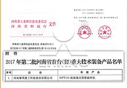 河南省首臺(tái)(套)重大技術(shù)裝備(HPT500)