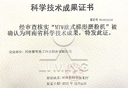 河南省科學(xué)技術(shù)成果獎(jiǎng)(具有隔振結(jié)構(gòu)的懸輥磨粉機(jī))