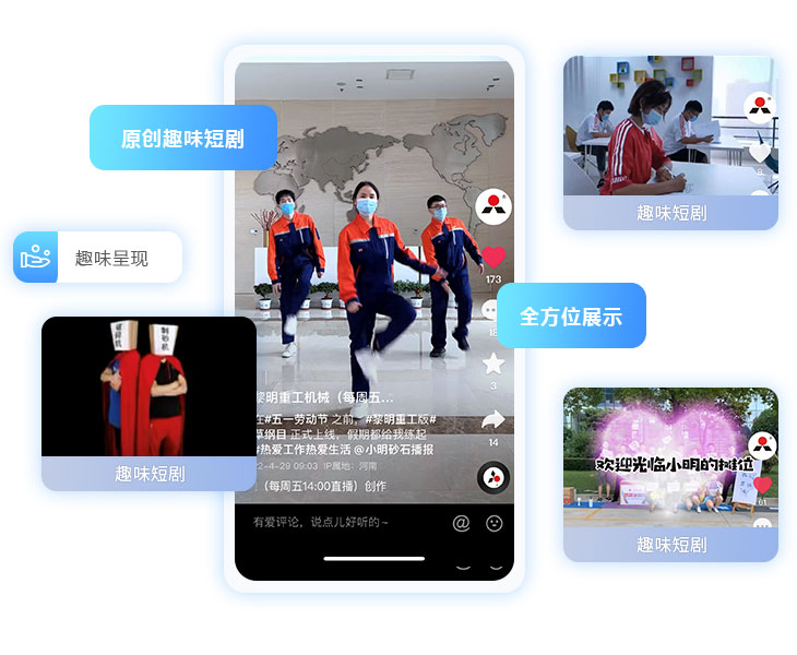 緊扣傳播趨勢和網(wǎng)絡(luò)發(fā)展動向,黎明重工以抖音平臺、微信視頻號等為側(cè)重,策劃創(chuàng)作趣味原創(chuàng)劇本,以影音方式讓黎明的品牌形象更加鮮活,讓知識變得有趣且有溫情,全方位展示黎明產(chǎn)品的特性與優(yōu)勢,使受眾能更加直觀地了解黎明的產(chǎn)品與品牌。